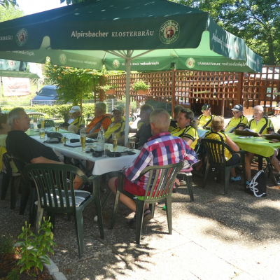Wer sich eine kleine Wochenend-Auszeit gönnen und frischen Wind um die Nase wehen lassen wollte, der war auf der Kraichgau-Tour gut aufgehoben. Die Bewegung auf dem Rat tat allen gut. Das Draußensein in der Natur sorgte dafür, dass der Alltagsstress schnell verschwand. Die von der Vorstandschaft ausgearbeitete Radtour führte durch eine abwechslungsreiche Wald- und Wiesenlandschaft, durch Weinberge sowie in den Naturpark Kraichgau-Stromberg. Hier bot sich zwischendurch immer wieder Gelegenheit zu einer gemütlichen Einkehr. Unser Begleiter im badischen Kraichgau waren sanfte Hügel, Streuobstwiesen und auch mal holprige, unbefestigte Straßenwege. Aber nach jedem Anstieg genoss man den Weitblick über das Land der 1000 Hügel. Unser erster Tag -Anfahrt nach Ochsenbach- in der hügeligen Kraichgau Landschaft war schon, bei 80 Pedalkilometern und ca. 860 Höhenmetern, eine sportliche Herausforderung für so manche E-Bike-Batterie. Eines darf man dabei aber nicht verkennen: